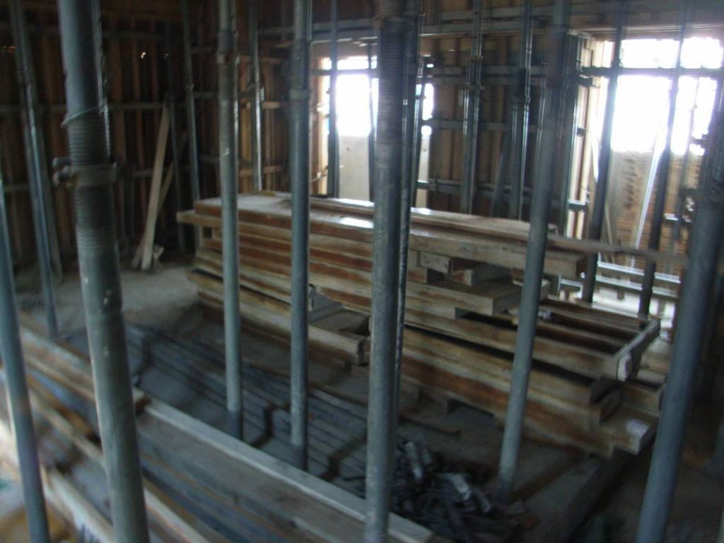 水平つなぎを取る、パイプサポート、大引き、鋼管を外す、梁底解体、スラブ解体、釘仕舞い
